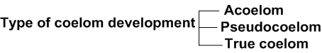 (iii) The third classification would be on the basis of the body cavity or coelom. Wheteher the body cavity is present or absent. And whether the coelom is acoelom, pseudocoelom or true coelom