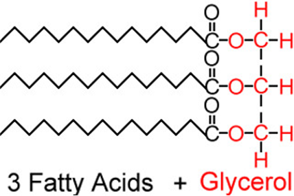 The triglycerides are made up of glycerol and three fatty acids. It is an ester of glycerol and fatty acids. The three fatty acids present in the triglycerides, may be same or different.