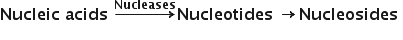 Digestion in small intestine : The nucleic acids in are acted upon by nucleases present in the pancreatic juices. The nucleases act on the nucleic acids to give nucleotides which are further broken down into nucleosides.