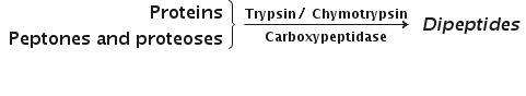 i. Proteins, proteoses and peptones in the chyme reaching the intestine are acted upon by the proteolytic enzymes of pancreatic juice.