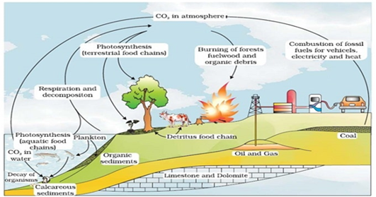 Key process involved in carbon cycle is photosynthesis and respiration.