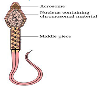 Draw a diagram of the microscopic structure of human sperm. Label the following parts in it and write their functions.