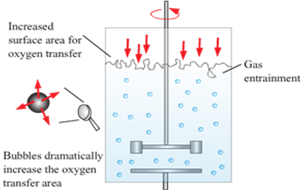 Draw a labelled sketch of sparged-stirred-tank bioreactor. Write its application.