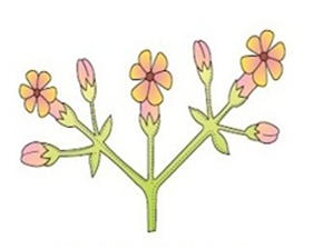 (ii). Cymose inflorescence: The main axis terminates into a flower. Hence, it is limited in growth.The flowers are borne in basipetal order i.e the old flowers are at the top while the new flowers are at the bottom.