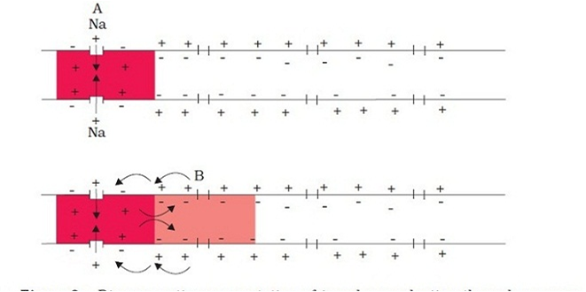 Thus, the impulse (action potential) generated at site A arrives at site B. The sequence is repeated