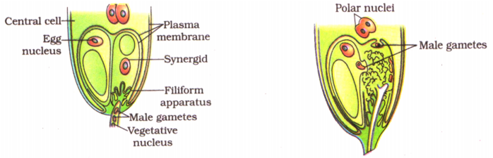 The events seen after the pollen tube enters one of the synergids in an ovule are as follows :