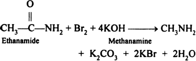 Hoffmann bromamide degradation reaction: Hoffman develops a method for preparation of primary amines by treating an amide with bromine in an aqueous or ethanolic solution of sodium hydroxide. In this reaction migration of an alkyl or aryl group takes place from carbonyl carbon of the amide to the nitrogen atom. The amine so formed contains one carbon less than that present in the amide.