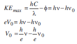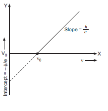Using Einstein’s photoelectric equation shows how the cut-off voltage and threshold frequency for a given photosensitive material can be determined with the help of a suitable plot/graph.i) Cut-off or stopping potential is that minimum value of negative potential at anode which just stops the photo electric current.