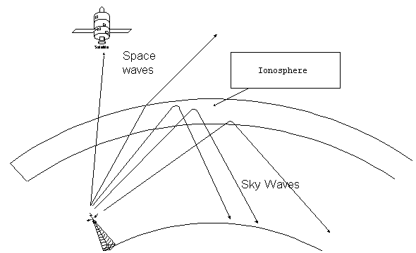 Sky wave propagation is used for long distance communication. In this process, radio waves are reflected by ionosphere. When radio waves of frequency range 3 MHz to 30 MHz, emitted from transmitting antenna reach the receiving antenna after reflection from the ionosphere acts as a reflector for radio waves.