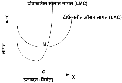 दीर्घकालीन सीमांत लागत तथा औसत लागत वक्र 'U' आकार के दिखाई देते हैं। दीर्घकाल में एक फर्म के सीमांत लागत वक्र और औसत लागत वक्र पैमाने के प्रतिफल पर निर्भर करते हैं। पैमाने के प्रतिफल की तीन अवस्थाएँ होती हैं:-वर्धमान प्रतिफल. स्थिर प्रतिफल, ह्रासमान प्रतिफल।