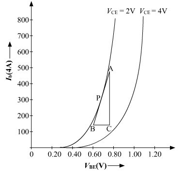 a)The ratio of change in base-emitter voltage to base current gives us the input resistance. We can calculate change in VBE and change in IB from the input characteristics. To find the input resistance, mark a point P on the input characteristic. Draw a tangent at point P. The reciprocal of slope AB will give us the input resistance.